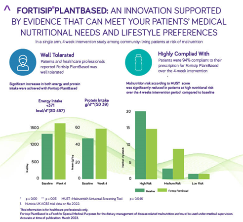 - Patients were 94% compliant to their prescription of Fortisip® PlantBased Energy over the 4 week intervention