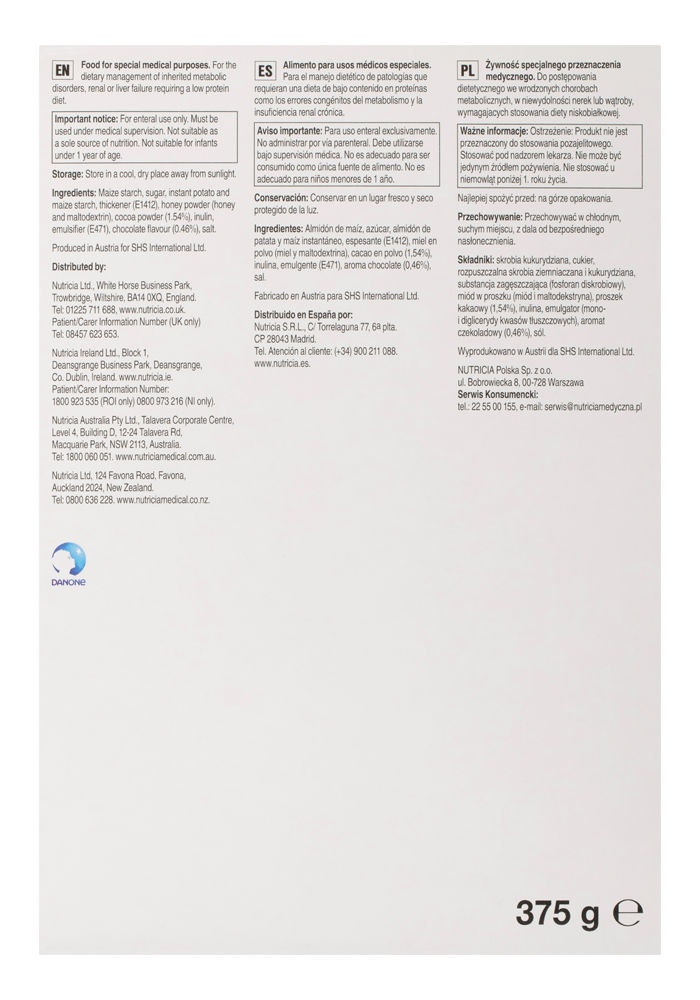 - For use in the dietary management of inherited metabolic disorders and other conditions requiring a low protein diet.