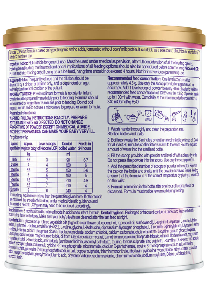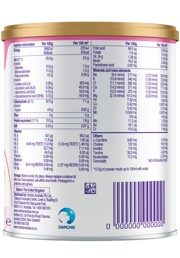 BREAST MILK IS BEST FOR BABIES: Professional advice should be followed before using an infant formula. Introducing partial bottle feeding could negatively affect breast feeding. Good maternal nutrition is important for breast feeding and reversing a decision not to breast feed may be difficult. Infant formula should be used as directed. Proper use of an infant formula is important to the health of the infant. Social and financial implications should be considered when selecting a method of feeding. Infant Formula product for special dietary use to be used under medical supervision. This product is not suitable for general use.FOR HEALTHCARE PROFESSIONALS ONLY.